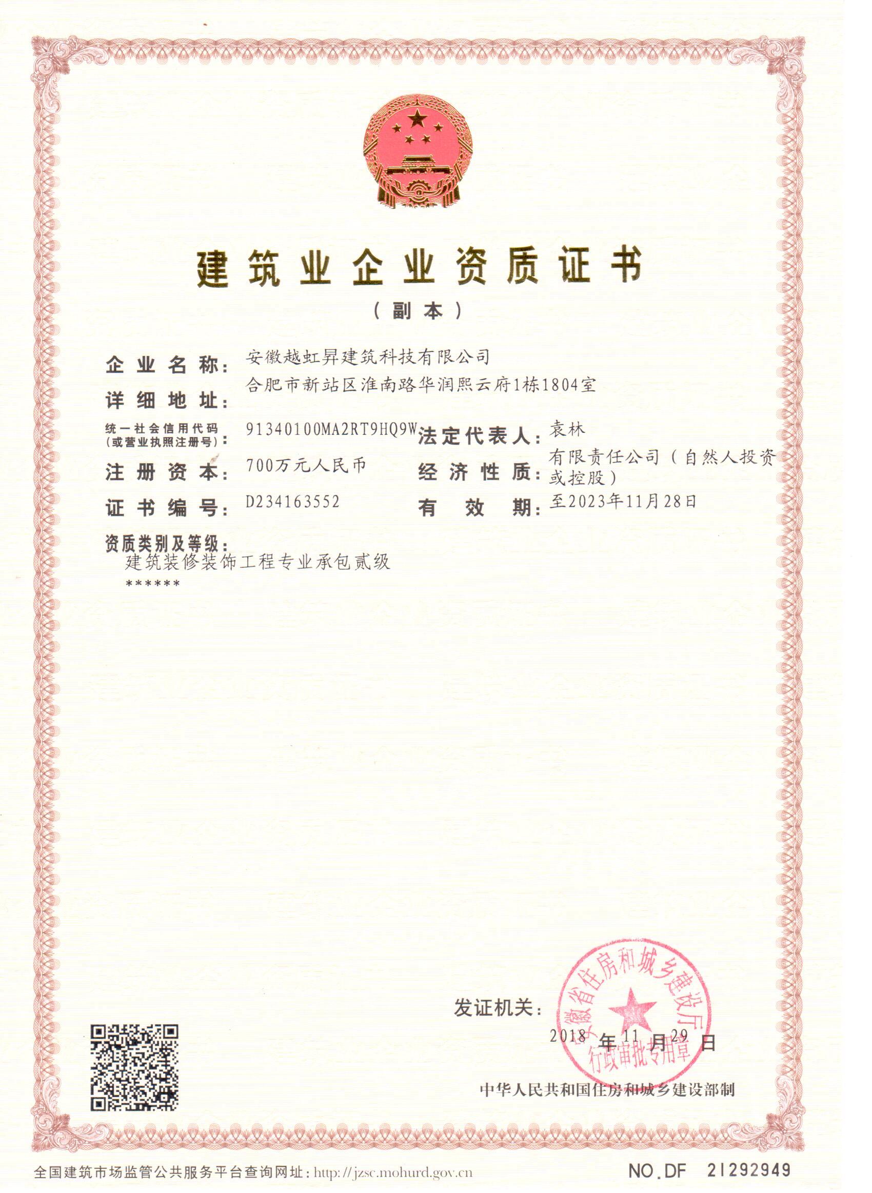安徽越虹昇建筑科技有限公司創立于2018年,注冊資金700萬元整。是一家專注于研發、生產、銷售、施工各類地坪材料的專業化地坪公司。公司具有建筑裝修裝飾工程專業承包貳級資質,施工勞務資質。公司以國內外先進化工科技為基礎,先后引進國際知名地坪材料品牌,如:ASHFORD FORMULA? -美國安斯福妙樂混凝土密封固化劑、M&DI?-美國美安地混凝土密封固化劑、Armstrong?-美國阿姆斯壯地材產品、RESPONSIVE?-睿仕PVC地板等,致力于將全球最先進的地坪材料及施工工藝服務于中國市場。